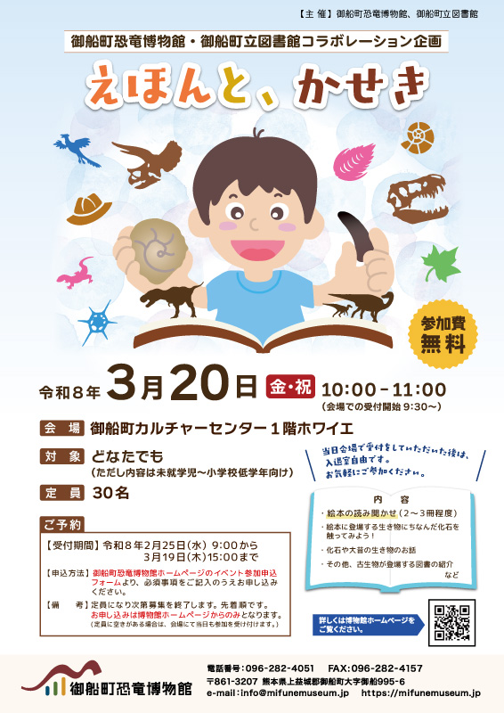 3/20 御船町恐竜博物館・御船町立図書館コラボレーション企画『えほんと、かせき』